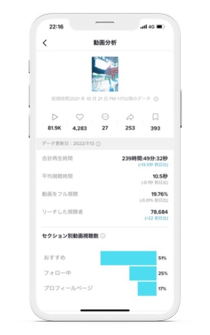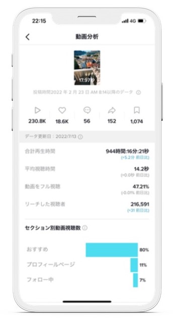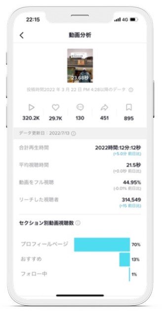 ただ運用するだけではなく、アカウント全体、投稿別のTikTokインサイトを確認しながら方針や企画の下方修正を実施。最短ルートで成果を獲得するためのPDCAサイクルを高速で回します。